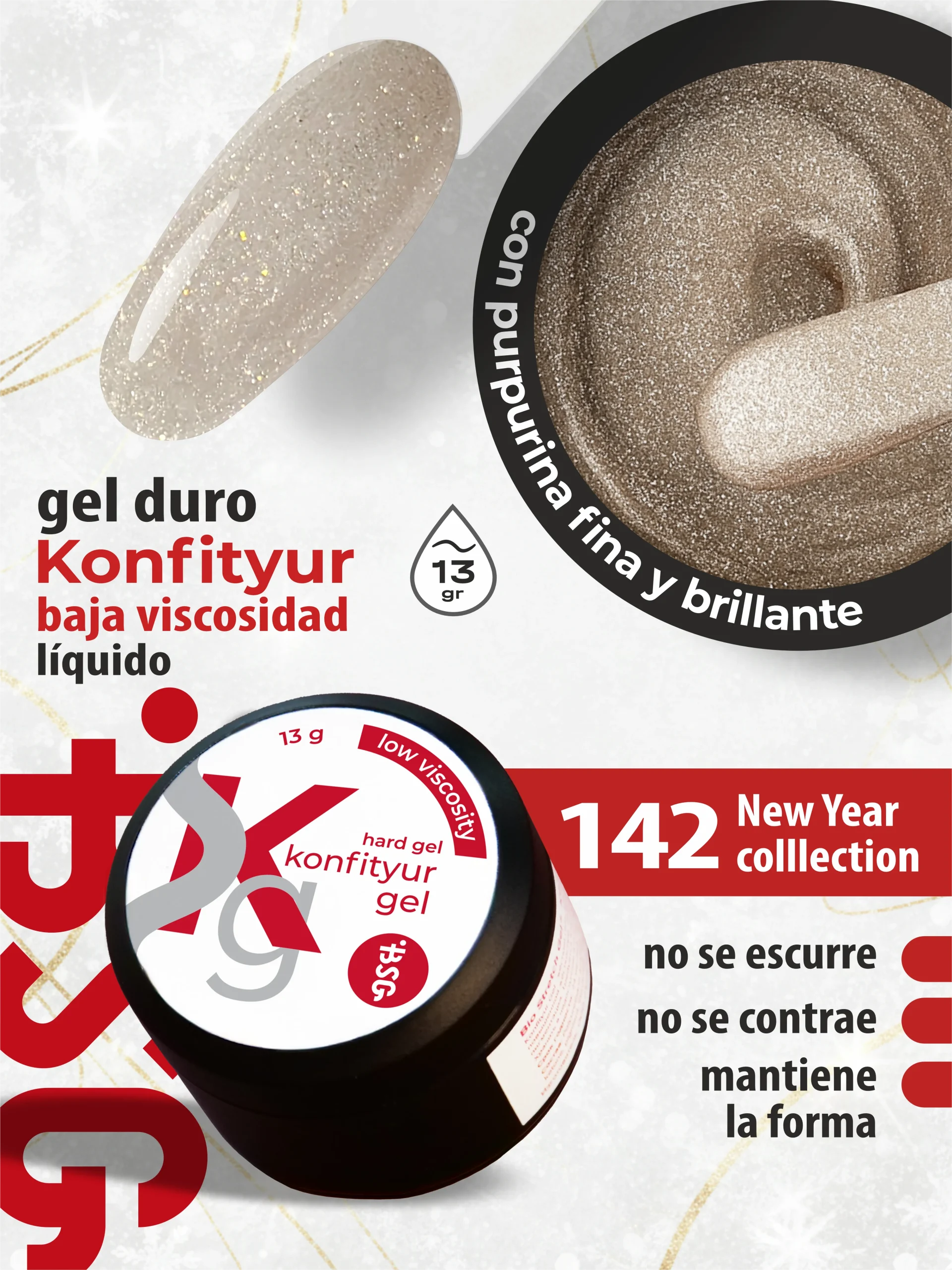 Gel duro BSG para extensiones Konfityur #142 – BAJA VISCOSIDAD (13 g)