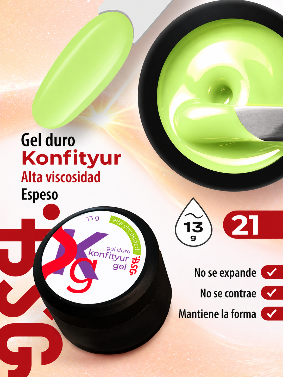 Gel duro BSG para extensiones Konfityur #21 – ALTA VISCOSIDAD (13 g)