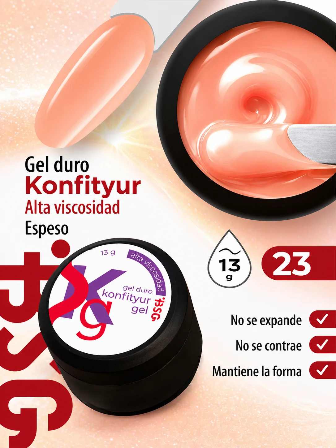 Gel duro BSG para extensiones Konfityur #23 – ALTA VISCOSIDAD (13 g)