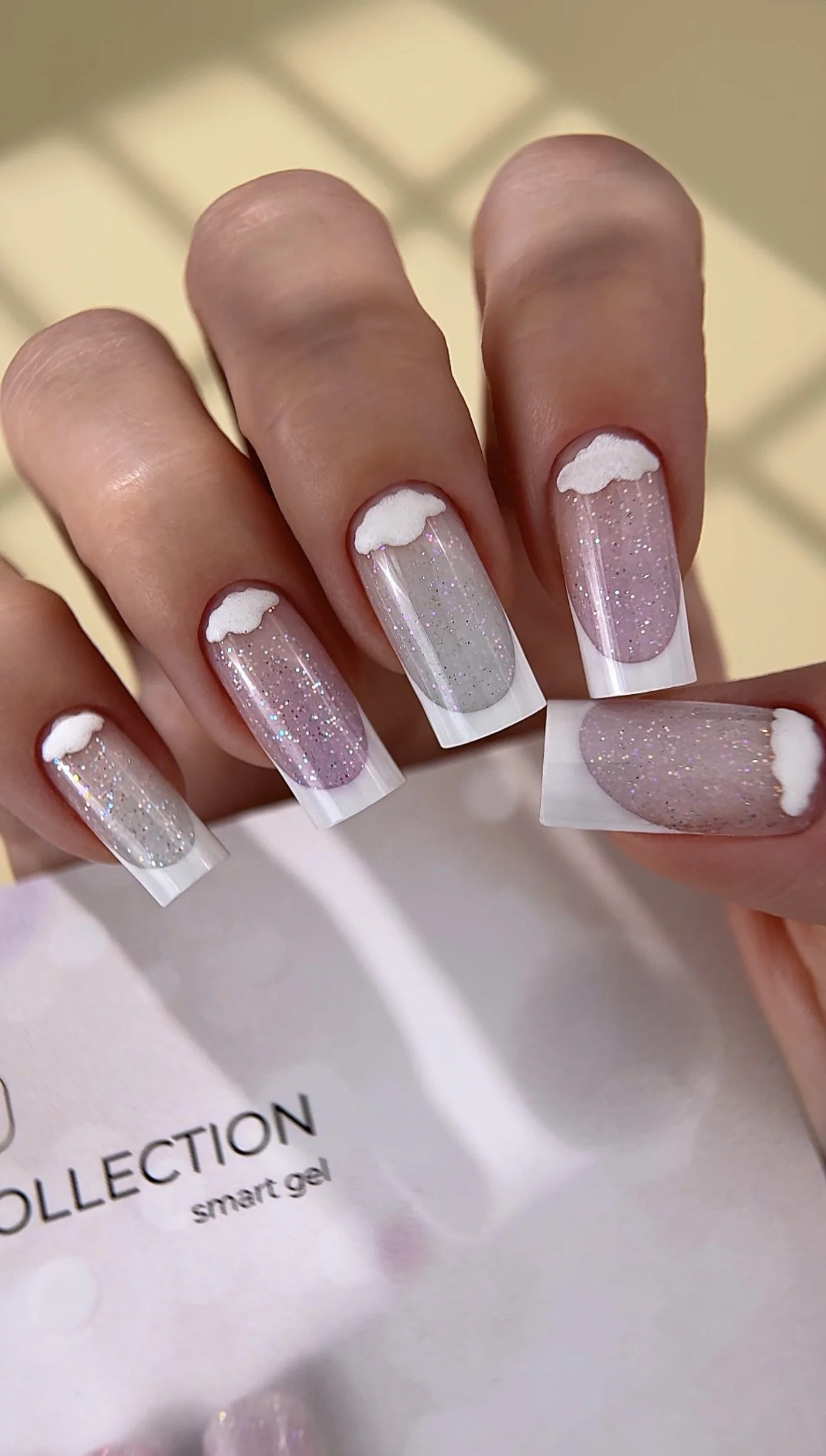 Cinco tonos semitransparentes de Smart Gel crean un efecto luminoso y etéreo, como si la manicura estuviera iluminada desde el interior. Un acabado ligero, sofisticado y lleno de profundidad.