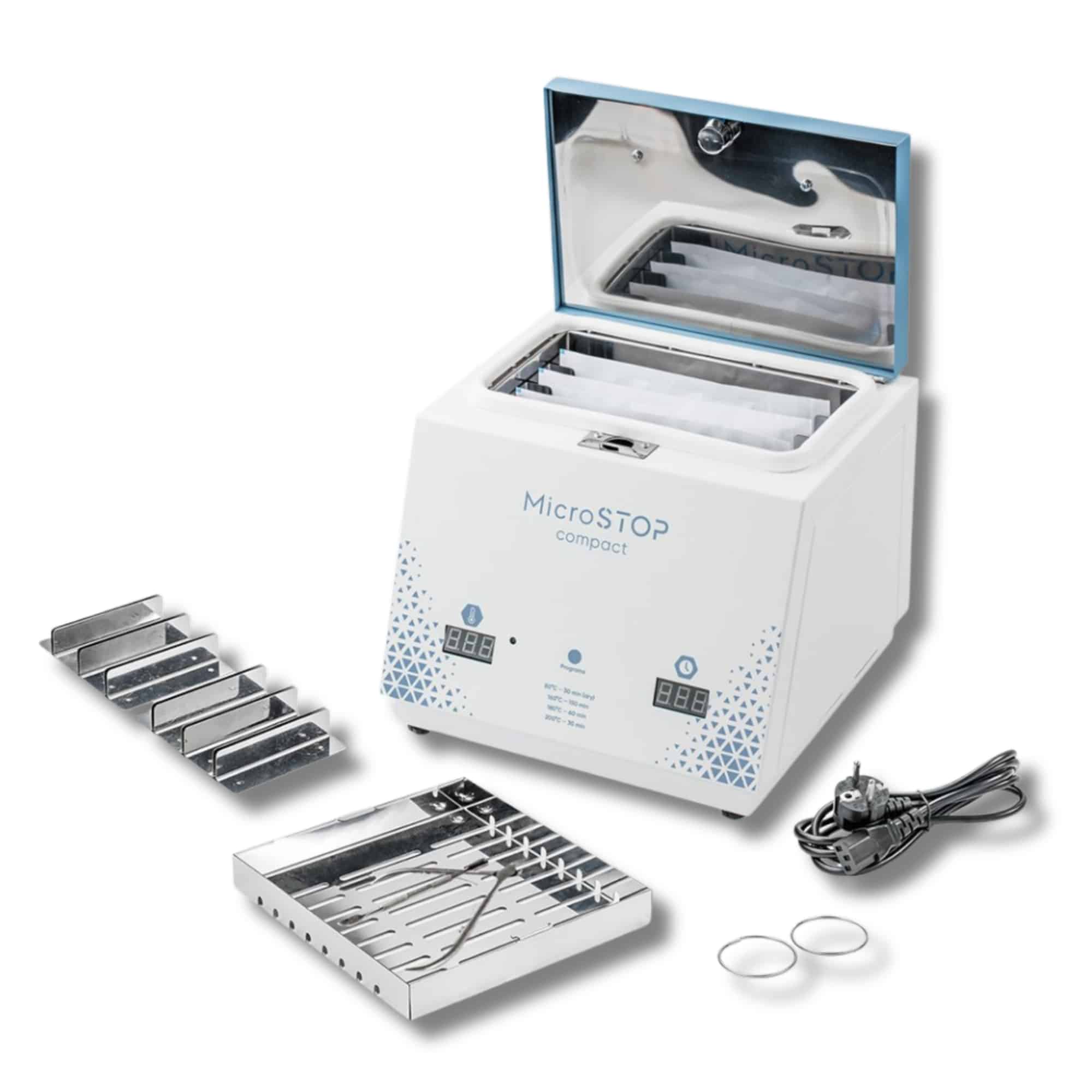 El MicroSTOP Compact es la elección perfecta para quienes buscan una esterilización eficiente en un dispositivo pequeño pero potente, garantizando la máxima seguridad para clientes y profesionales.