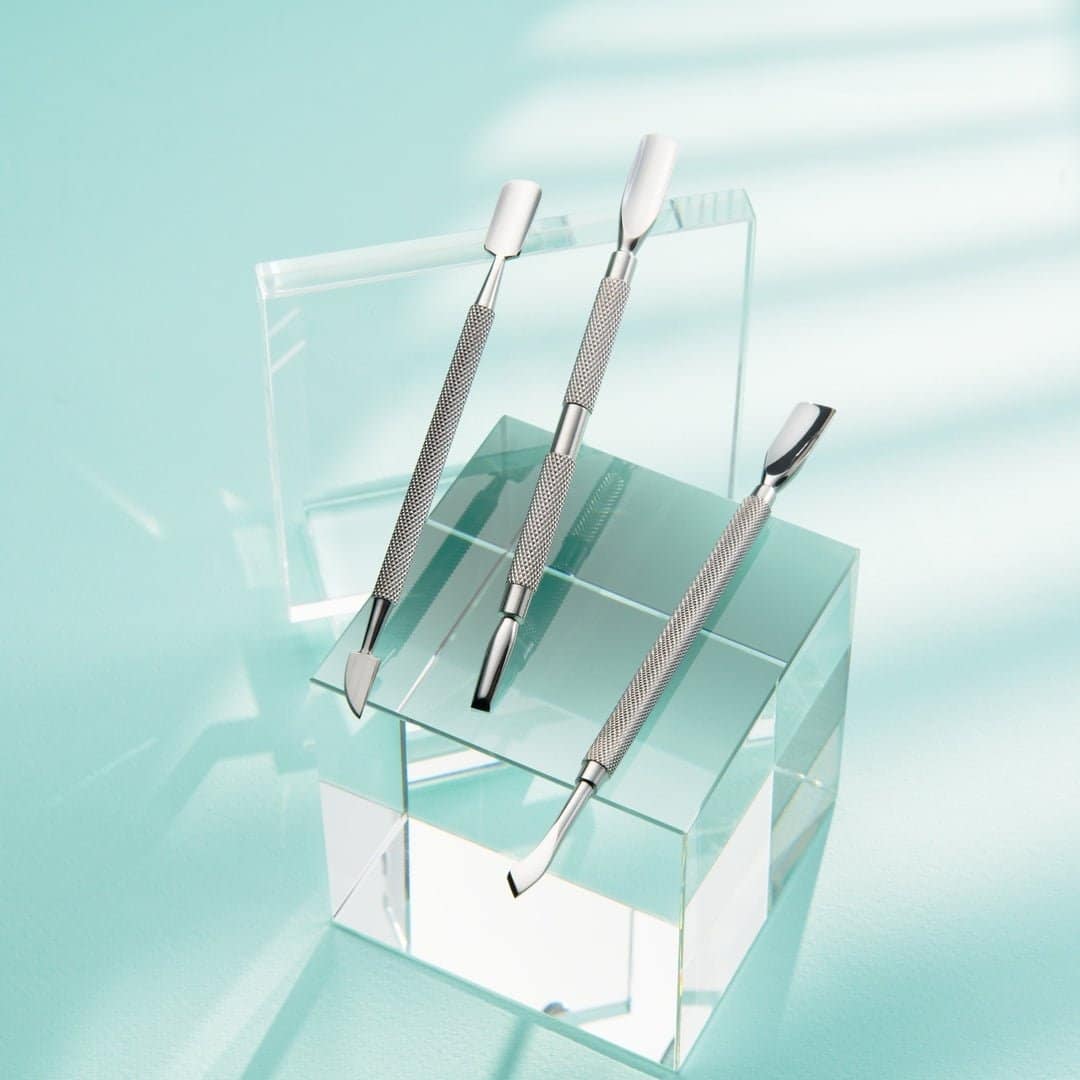 - Espátula pequeña: Ideal para empujar la cutícula y retirarla de manera controlada con tijeras o alicates.